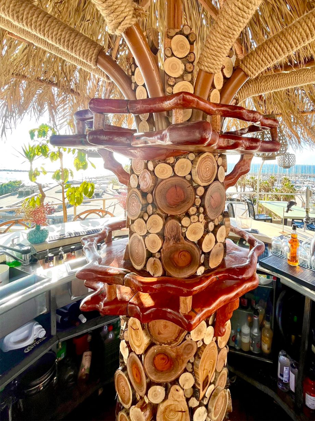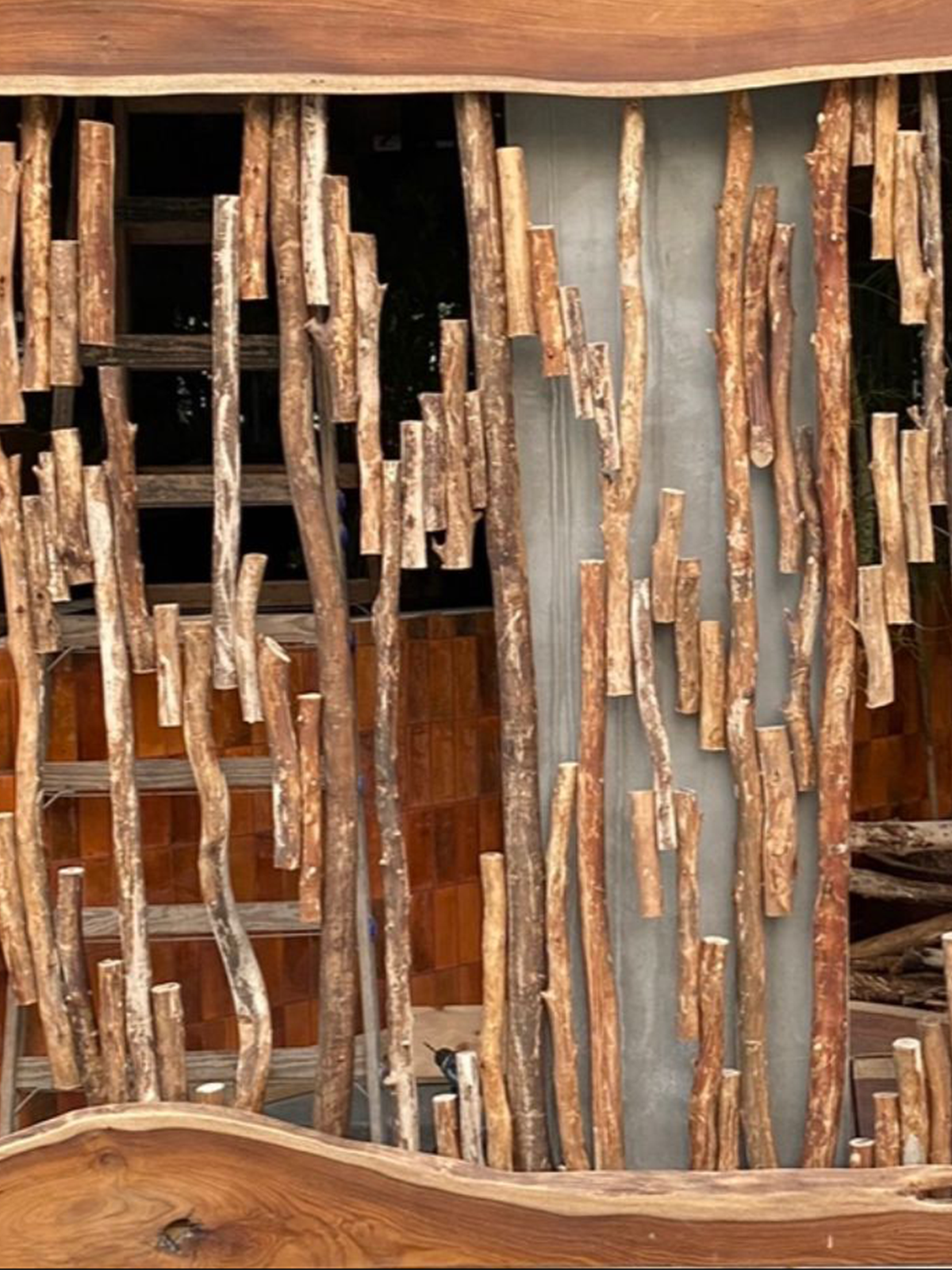 עצי אקליפטוס ארץ ישראלי שחוברו אחד אחד . מסגרת שנותנת מעטפת יפה לכל הדבר -עשוייה מסיסם הודי .